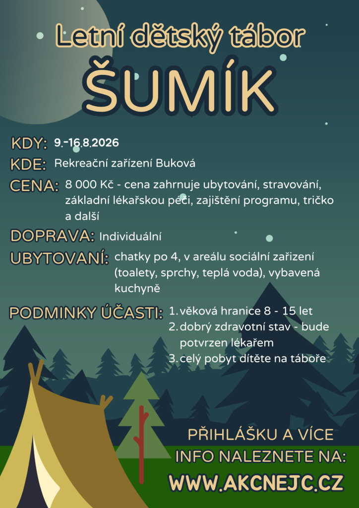 Těší nás Váš zájem o tábor! Aktuální počet volných míst k datu 5.2.2026: 6